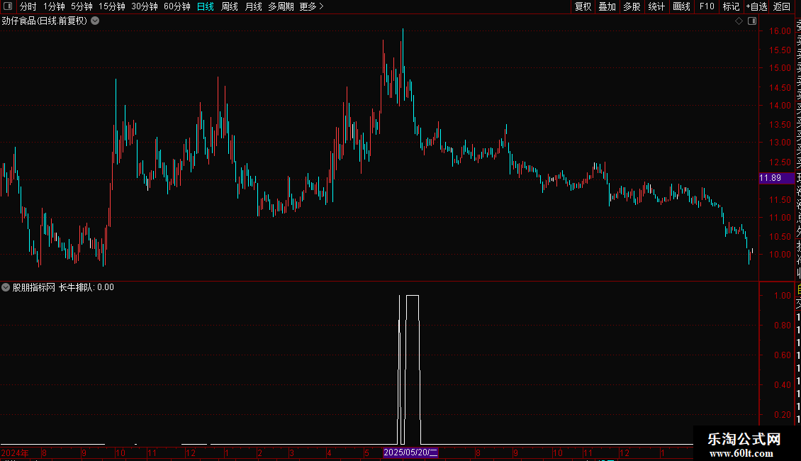 当“长牛排队”信号出现时,表示周线、日线MACD均发出特定看涨结构,且股价处于中长期均线多头趋势中。该信号旨在捕捉经过充分调整后、多周期共振的潜在上涨起点。