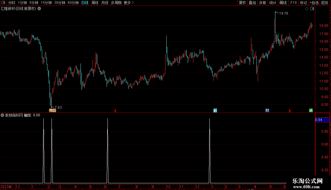 输出为“触发”信号,满足所有条件时标记为1。指标适用于趋势初期或回调后的再次启动阶段,常需结合其他分析手段综合判断。