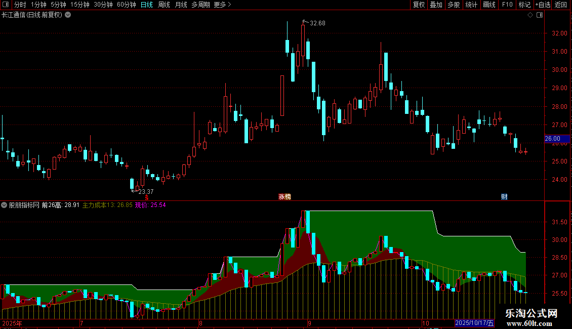 2. 价格通道:用色带直观展示5日均线与主力成本线、26日前高之间的空间,体现价格运行的相对位置与压力支撑。