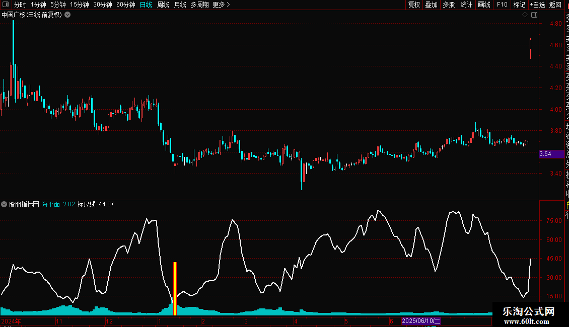 买入信号:当副图中出现红色的“航标灯”柱体时,代表指标监测到了潜在的底部反转信号,此时可视为买入或关注的时机。