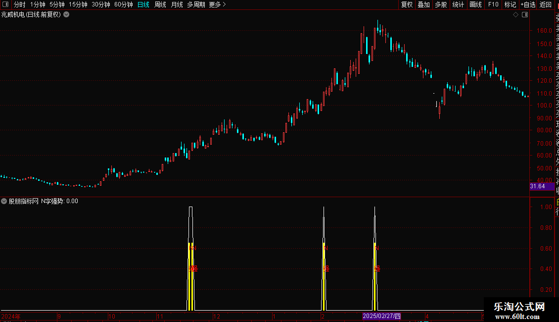 策略:当出现“N强”信号时,表明前期强势股经过短暂洗盘后,可能即将开启第二波主升浪。这是一个典型的“龙头首阴”或“强势股二波”的介入点。操作上,可在信号出现的尾盘择机介入,并将买入当天的最低价设为止损位,一旦跌破则果断离场。