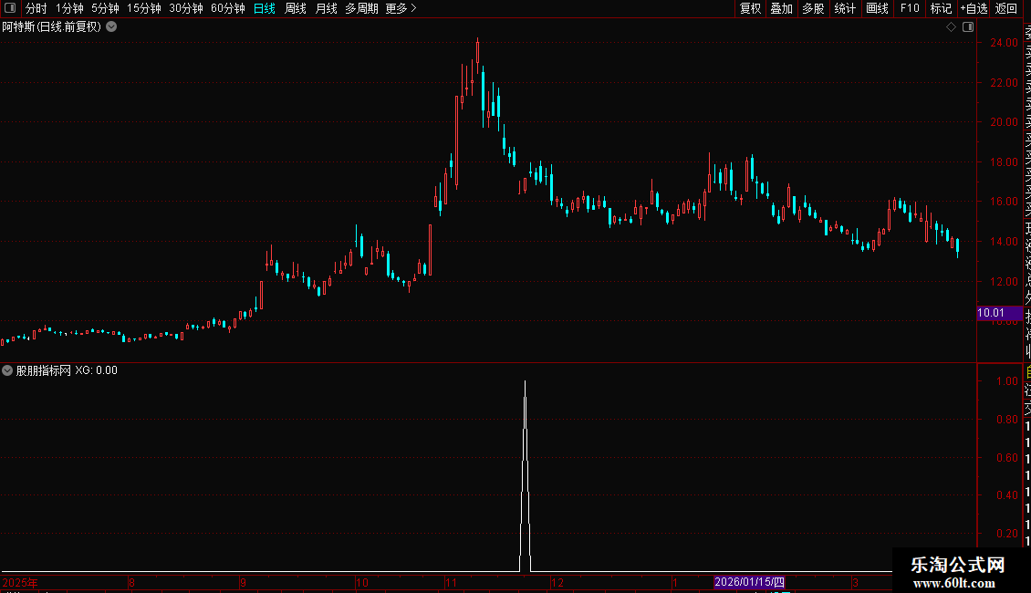 VARG32:=COUNT(COUNT(VARG26>9.9 AND CLOSE=HIGH,1)>=1,60)>0;