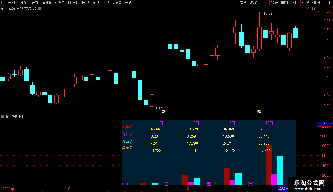 通达信资金图表副图指标 一、三、五、十日资金流入流出图表,指标开源