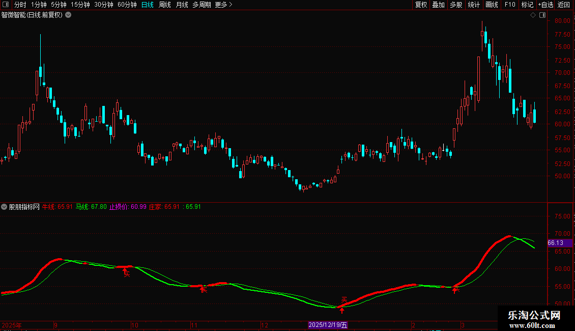 4. 趋势可视化:庄家线用粗红/细绿线直观显示其涨跌方向。