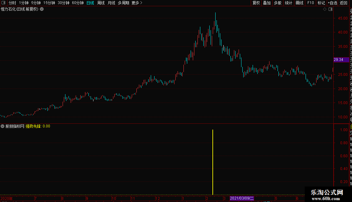 强势先锋指标是多周期均线的多头排列,同时配合斜率向上和乖离底背离等的多重过滤,精准捕捉趋势强势股的短线启动机会。