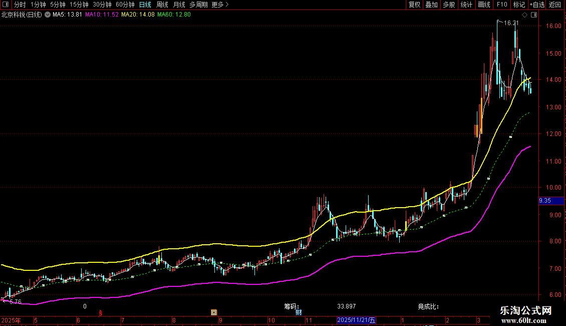 筹码峰:在主图上直接显示当前最主要的筹码密集区价格,帮助判断主力的成本位置。