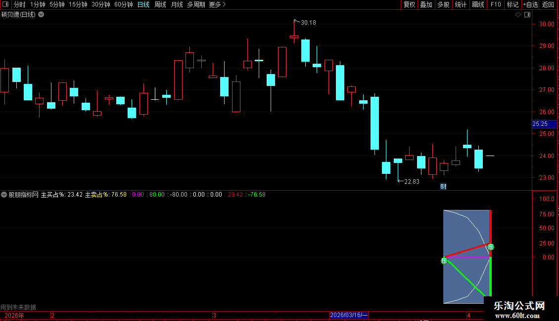 当满足条件-主卖占%<0ANDCURRBARSCOUNT=1时,在-80和0位置之间画柱状线,宽度为0.5,0不为0则画空心柱.,COLOR00FF00
