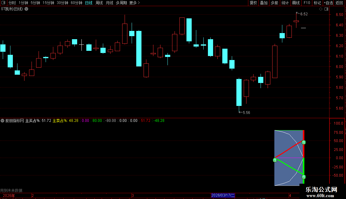 这是一个用于分析个股分时图中主力资金流向的指标。它通过计算主动买入和主动卖出的成交量占比,并以图形化的方式在分时图下方展示。
