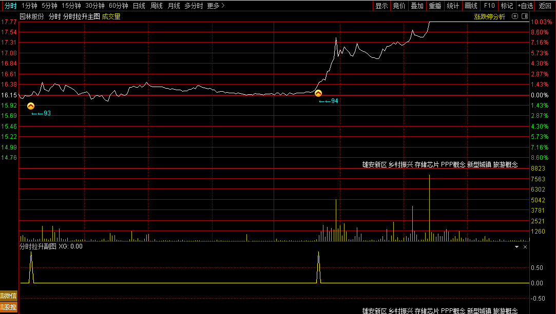 通达信【分时拉升】主副图捕捉底部反弹或突破启动信号源码