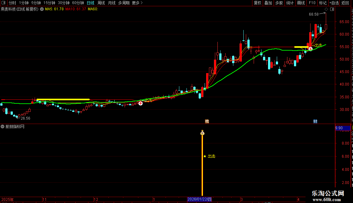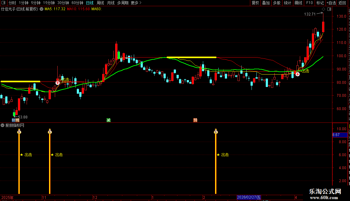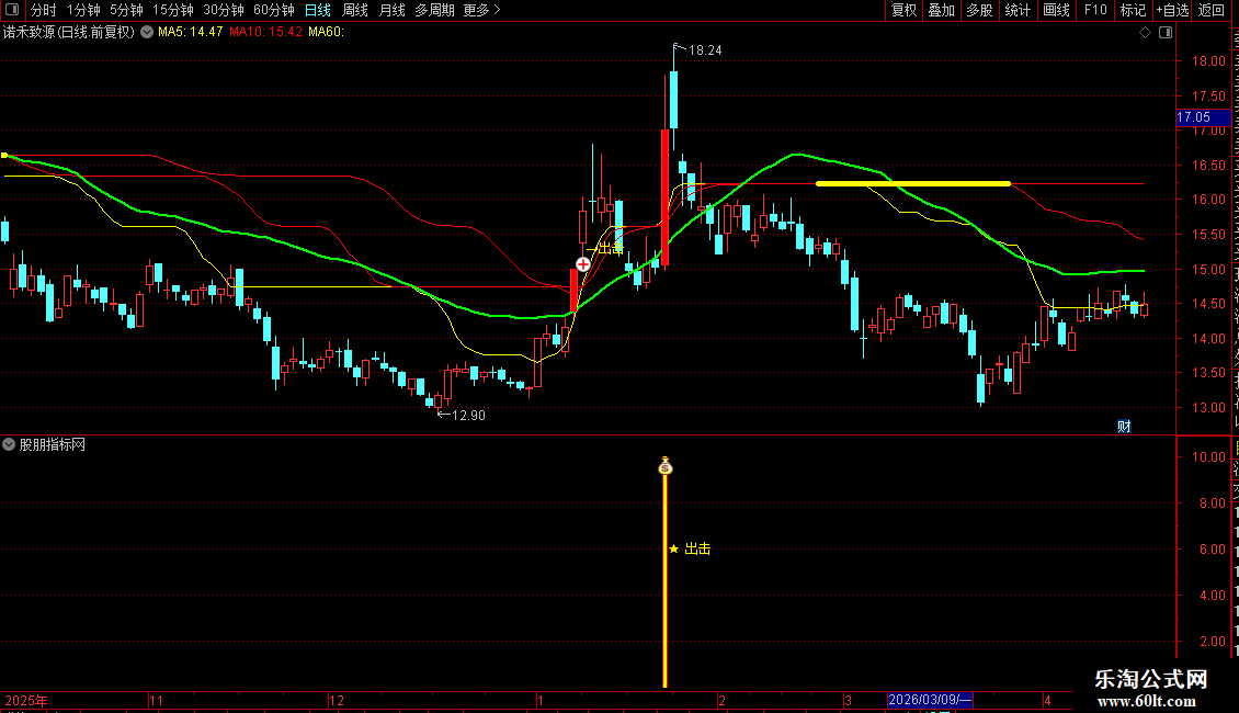 2. 副图:红色柱状+★出击信号共振,确认入场时机,提升操作准确率;