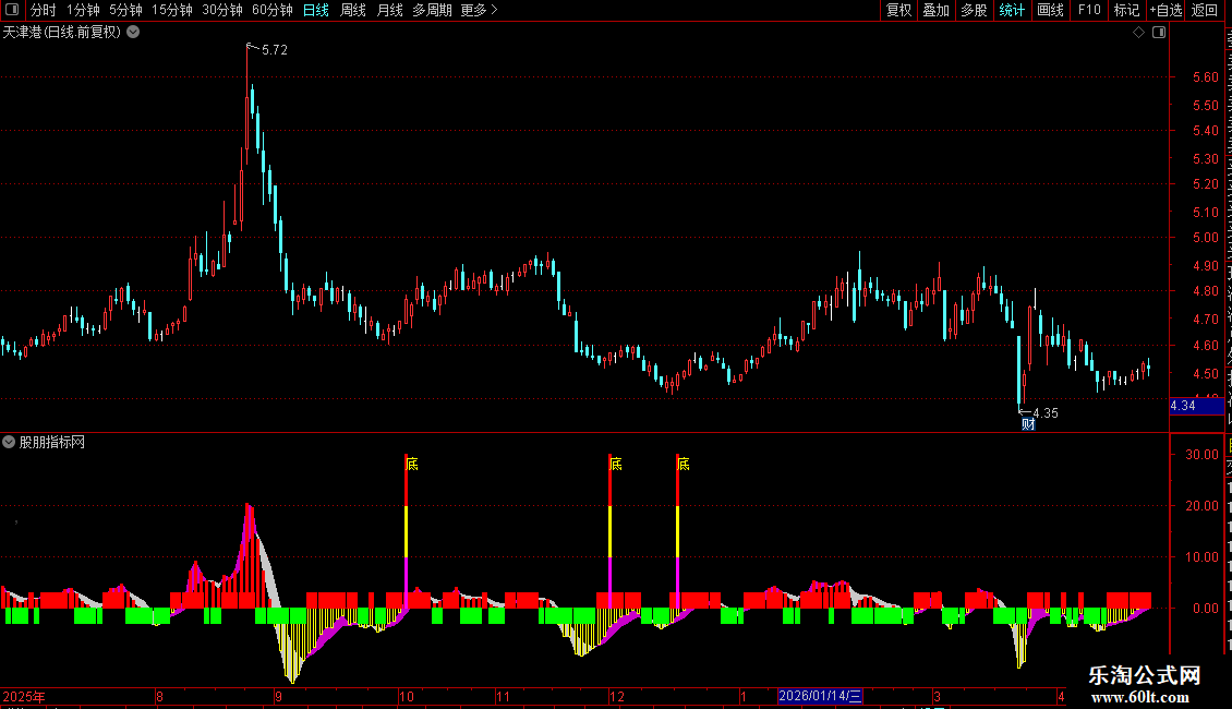 1. 通达信底部乖离指标,融合价格趋势、成交量趋势与EMA指标,精准筛选底部乖离度高的个股信号,乖离度越高,个股底部确定性越强。该指标可作为副图使用,同时搭配红绿柱辅助判断个股强弱,直观呈现多空力量变化,助力投资者精准识别底部区域,降低抄底风险。