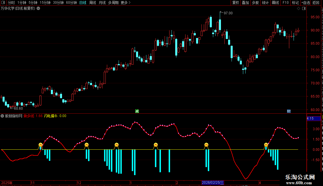指标通过融合价格、成交量与成本,综合判断个股的做多动能与主力强度。当“做多线”由负转正并持续上行,且“主力强度”柱状线同步放大时,表明多方力量占据主导,是潜在的介入时机。当出现“闪电擒牛”信号时,意味着股价短期动能强劲,可能迎来快速拉升,可视为短线追涨的参考。操作上,宜在“做多线”金叉向上时关注,结合“主力强度”确认,并在出现“闪电擒牛”时把握加速机会。