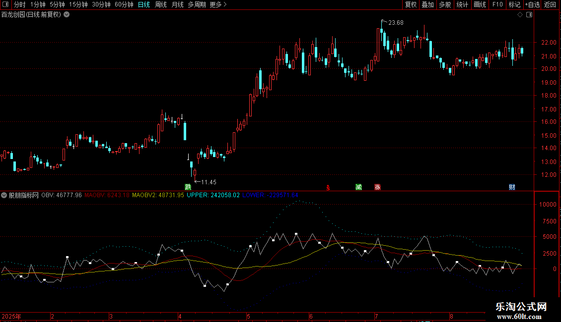 1. OBV能量潮:基于成交量与价格关系判断资金流向,附带15/30日均线及布林带上下轨。