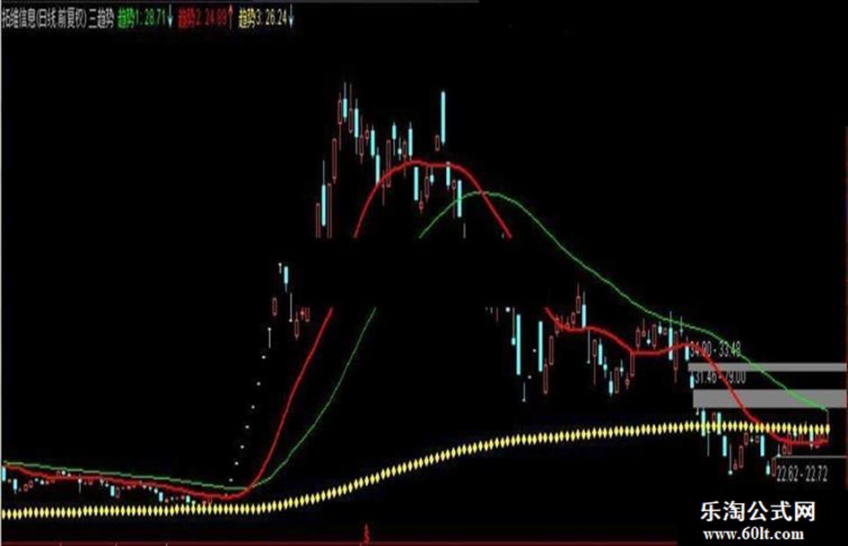 说明:难道炒股真的这么简单吗?只有经过长期实践和在牛、熊市中经得起时间考验的指标才是好指标。通过三条线的走势,可以成功率极高的抓到启动初期大牛股。公式简单实用,配合成交量一起使用会起到事半功倍的效果。慢慢揣摩,必有收获……。