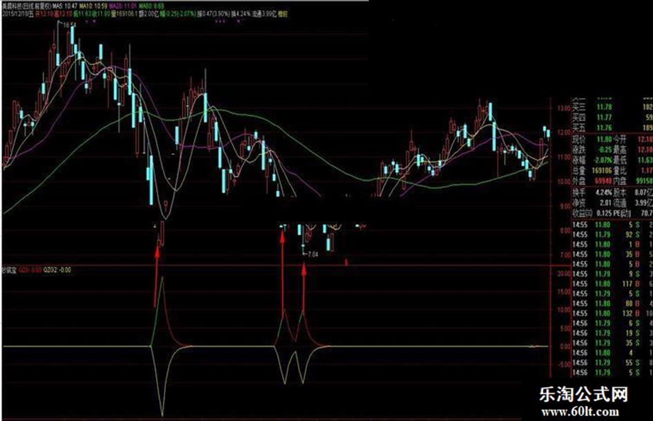 QZG: EMA(IF(LOW<=VARE,(VARD+VARF*2)/2,0),3)/618*VAR10, COLORRED;