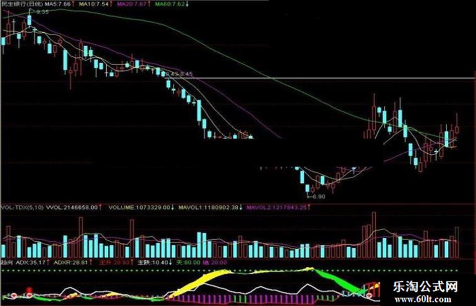STICKLINE(CROSS(ADX,主跌) AND 主跌<20 AND ADX>ADXR,20,40,1,0),COLOR0000DD;