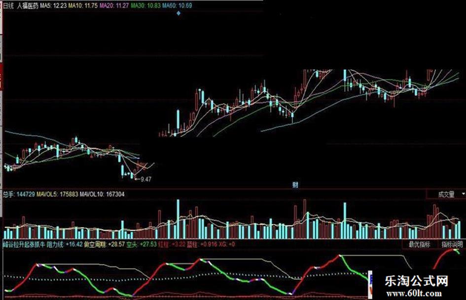 同花顺峰谷拉升起涨抓牛副图指标公式源码贴图
