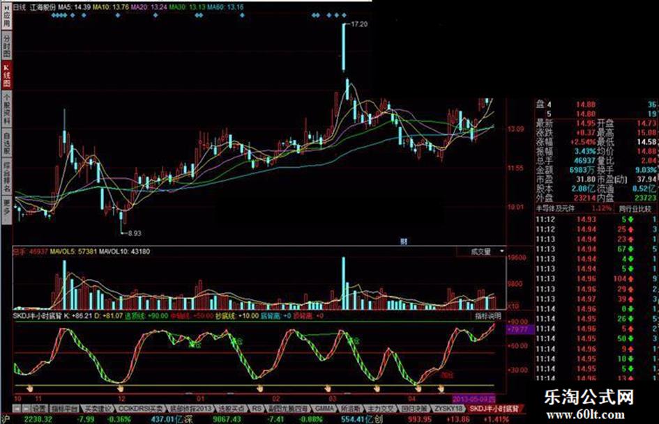 DRAWTEXT(CROSS(D,K) AND (D > 85),70,'卖'),colorgreen;