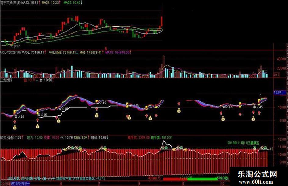 通达信二龙戏珠副图指标有上升彩带和下降彩带组成。指标买卖点清晰明确易于操作。