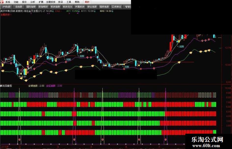 马线:=MA(牛线,6),COLORMAGENTA{COLORYELLOW};