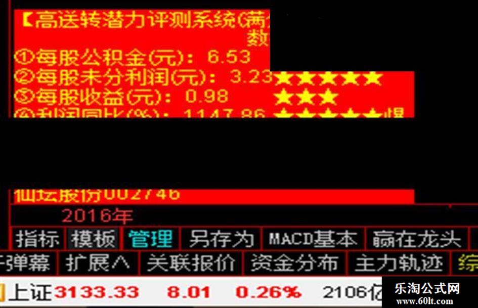 DRAWTEXT_FIX(1,0,0,0,'【高送转潜力评测系统(满分5星)】 V1.0')COLORYELLOW;