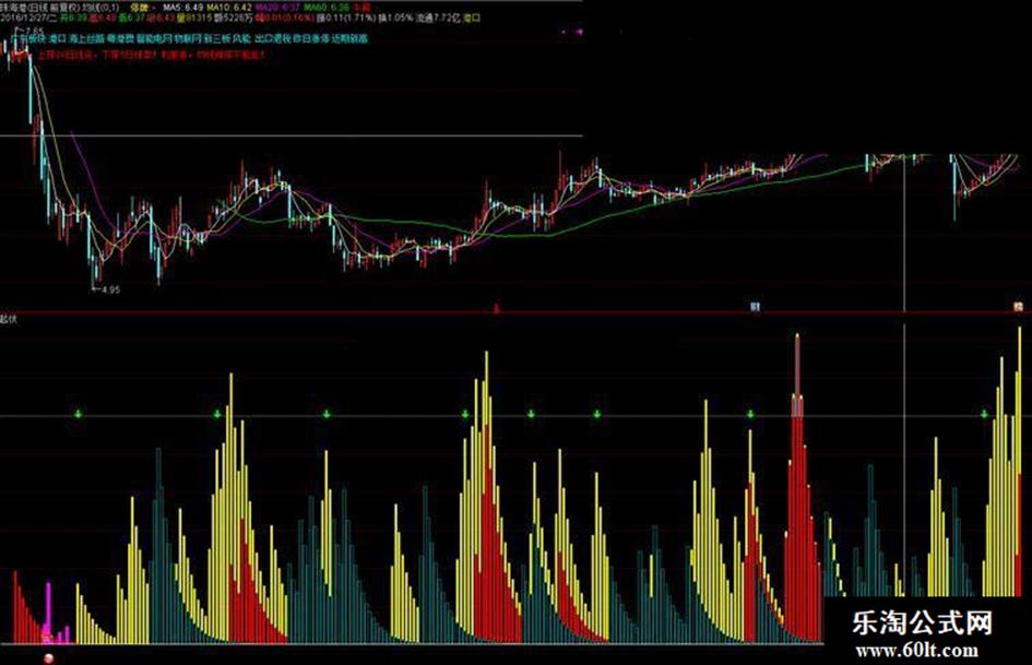 通达信【起伏波动带】主副/选套装指标红线代表上升趋势绿线代表下降趋势源码