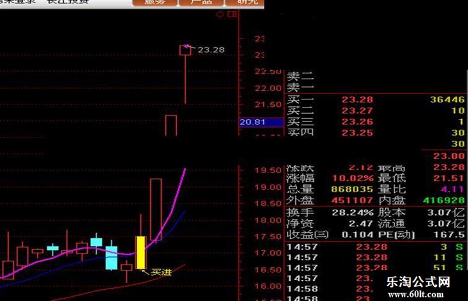 DRAWTEXT(FILTER(买=1,5),LOW-0.05,'↖买进'),COLORYELLOW;