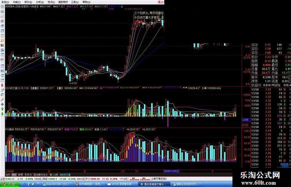 图中红色量柱大小代表RSI值,红色量柱上升,RSI上涨,股价上涨。