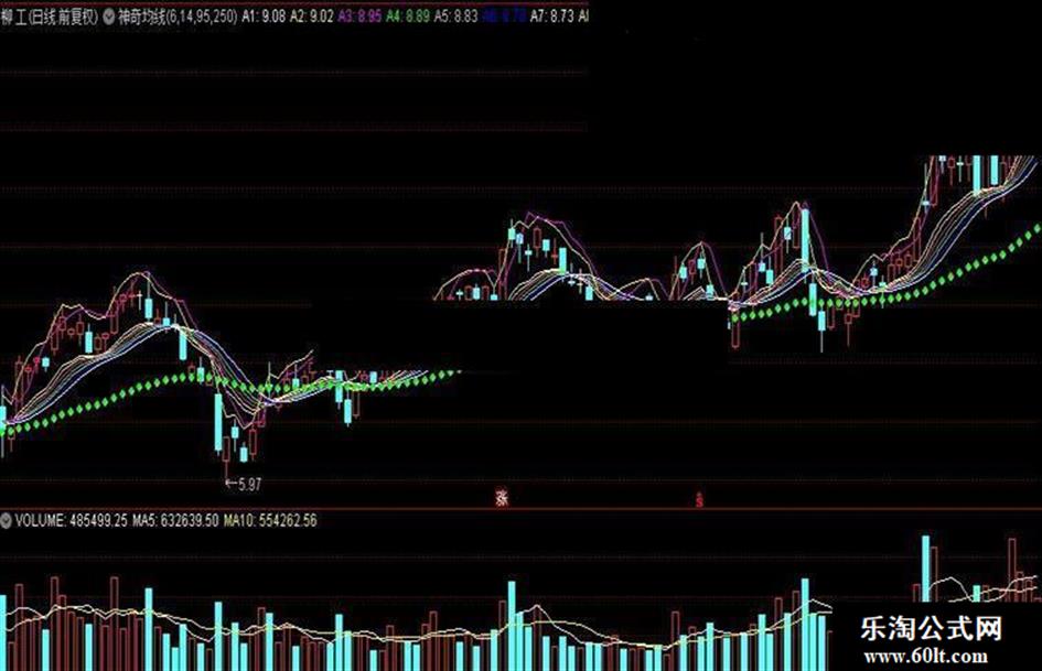 安全线: EMA(CLOSE,55), CIRCLEDOT;