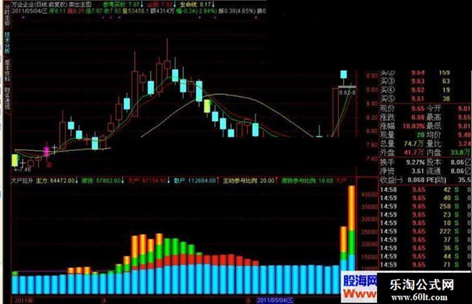 STICKLINE((大户 > 0),0,大户,2.7,0),COLOR102099;