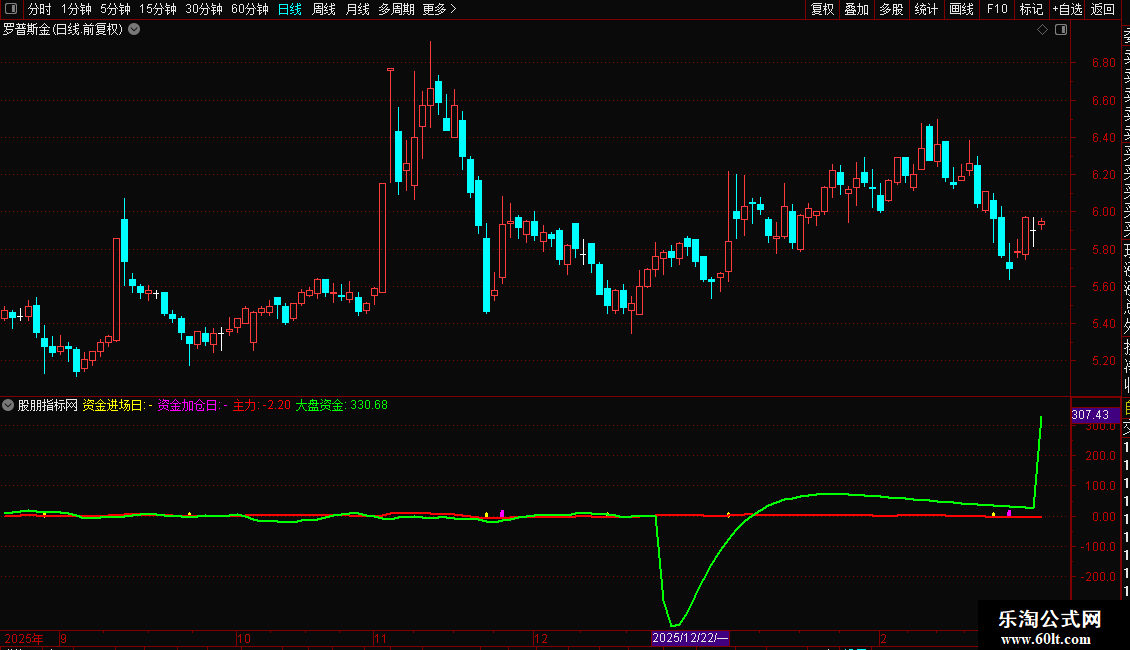 资金加仓日:IF(A12>0,15,DRAWNULL),COLORFF00FF,LINETHICK4,STICK;