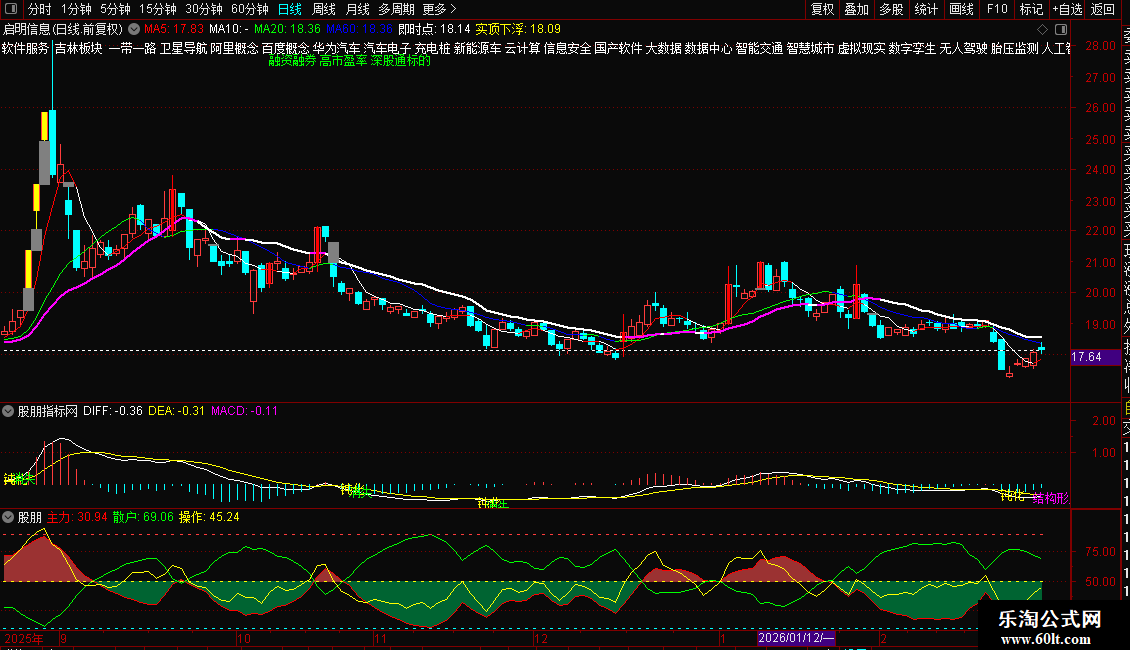 DRAWTEXT_FIX(TJ,0,0,0,HYBLOCK);{在屏幕左上角显示所属行业板块}