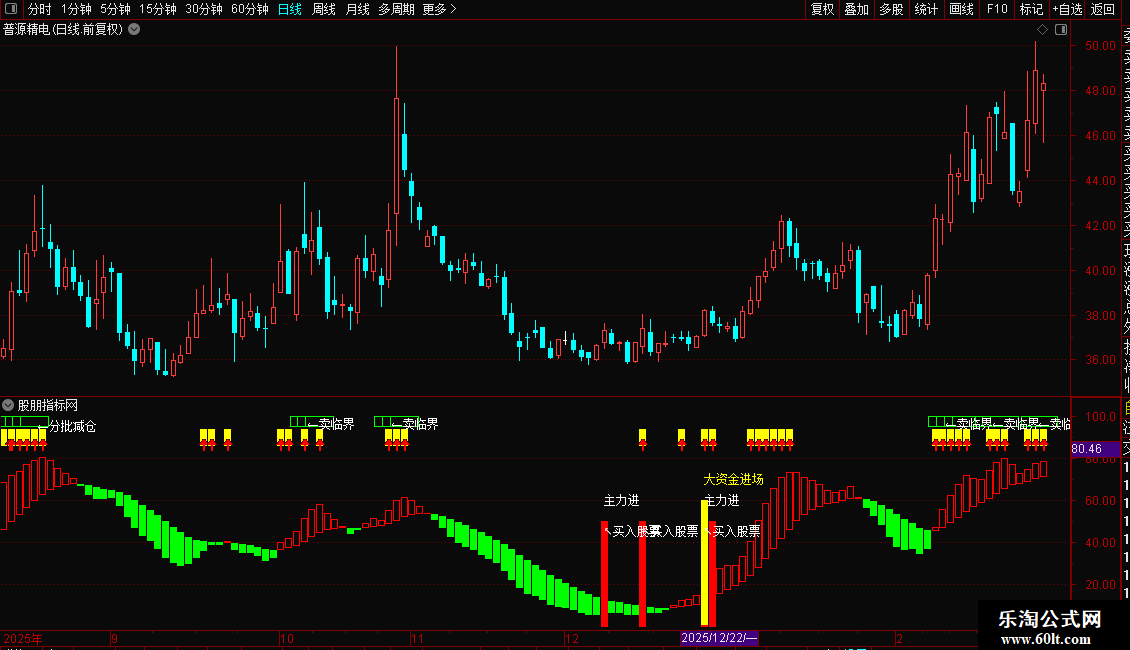 DRAWTEXT(VAR11X AND COUNT(VAR11X,30)=1,70,'大资金进场'),LINETHICK1,COLORYELLOW;