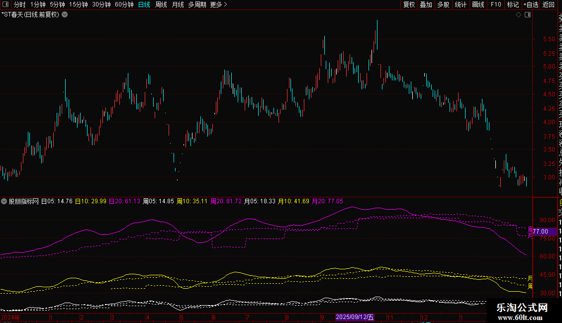 日线上实现跨周期显示“周均线”和“月均线”,不是市面上引用week和month函数的写法,手机通达信也可以使用。