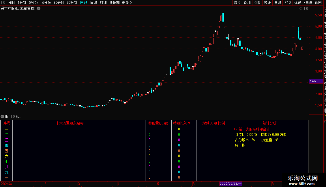 把以下源码做成指标幅图,可以直观展现最近六期机构家数持股数量及前十大流通股东持股合计,不需要自定义数据,只需要下载专业财务数据即可。