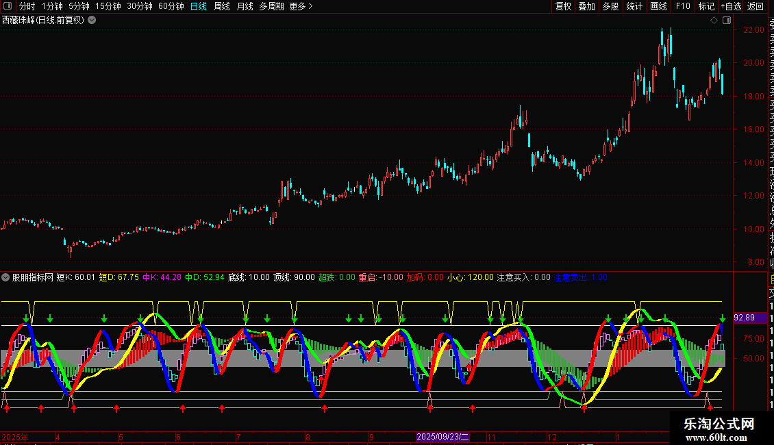 加码:IF(CROSS(中J,REF(中J+0.01,1)) AND BDDD AND BETWEEN(中J,20,60),1,0),COLORRED,NODRAW;