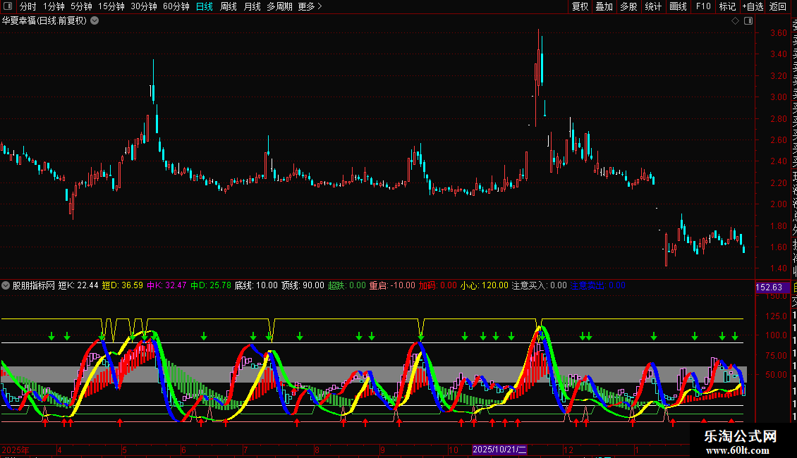超跌:IF(中J<0,10,0),COLORLIGREEN;