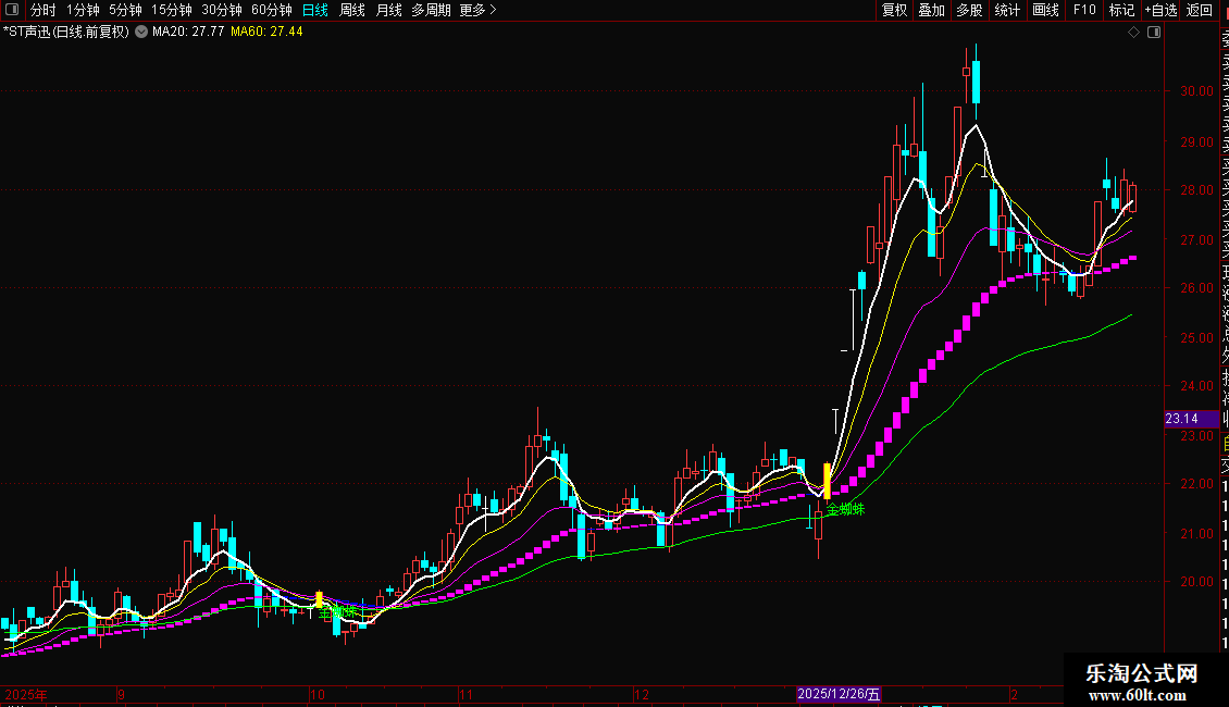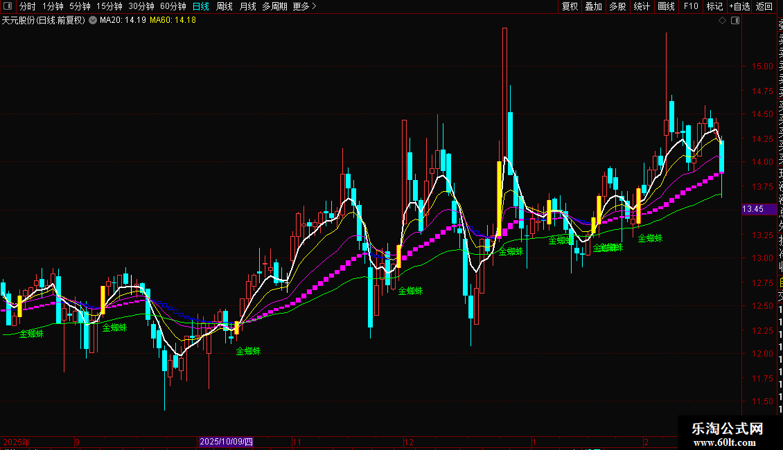DRAWTEXT(一阳穿三线,L-0.1, '金蜘蛛'),COLORGREEN;