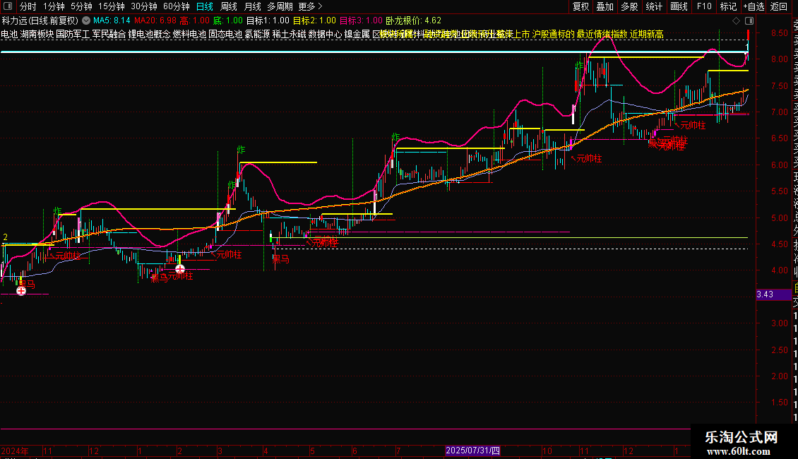 黑马线:CONST(REF(C,HMXTS)),COLORFFFF00,LINETHICK2;