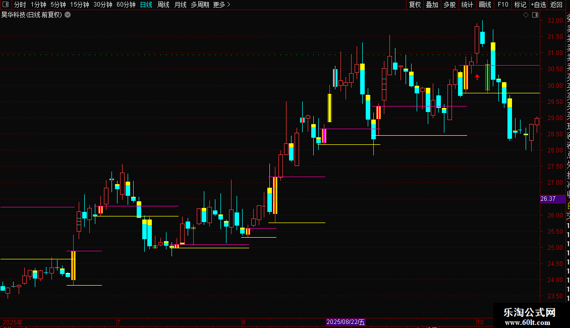 上三一:(MAX(OPEN,CLOSE)-MIN(OPEN,CLOSE))*2/3+MIN(OPEN,CLOSE),NODRAW,COLORMAGENTA;