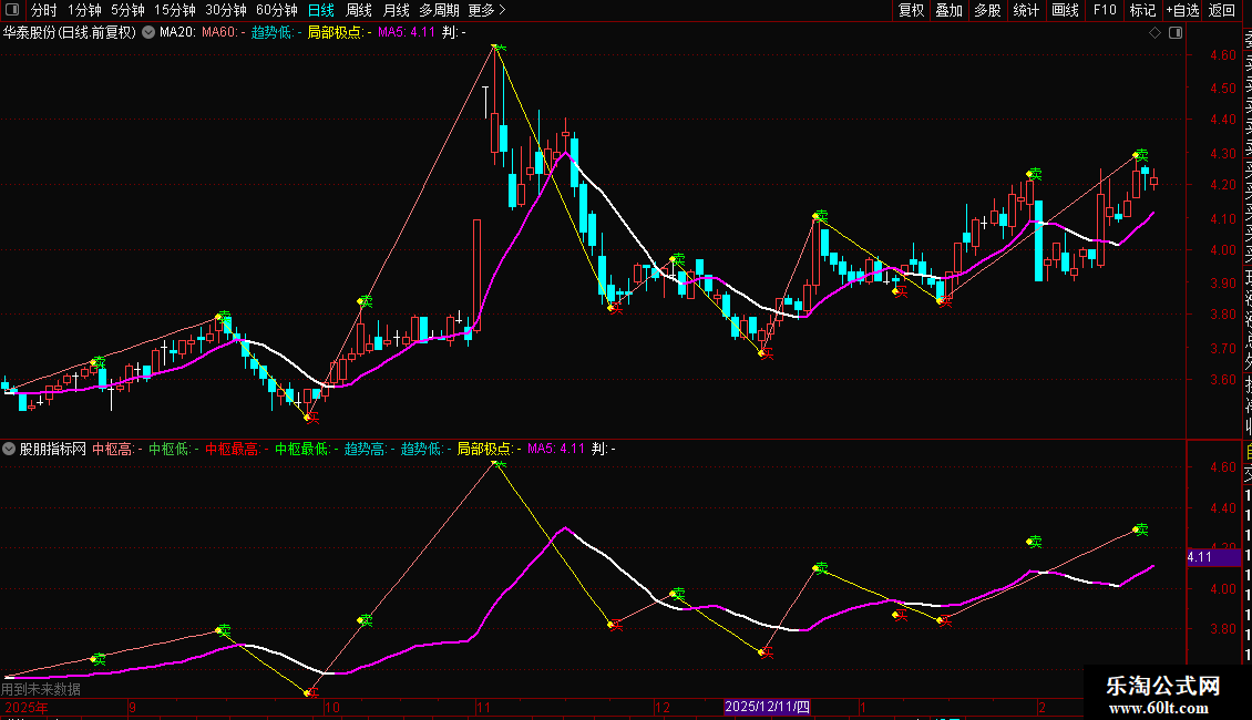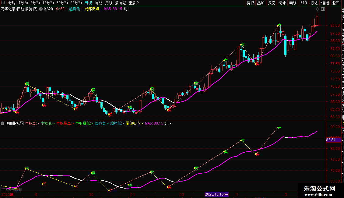 局部极点:IF(极点保留=-1,L,IF(极点保留=1,H,DRAWNULL)) CIRCLEDOT COLORYELLOW;