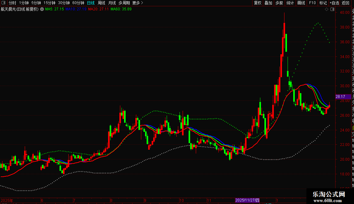 STICKLINE(OPEN>=CLOSE ,O,C,0.5,0 ),COLOR00FF00;