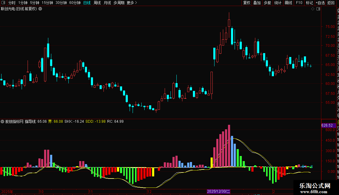 STICKLINE(DK<0 AND 多方<空方 AND SK<SD,RC,RC+DK,1,0),COLOR33FF33;