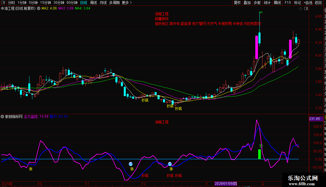 主力监控:EMA( (CLOSE-MA(CLOSE,7))/MA(CLOSE,7)*480,2)*5,COLORMAGENTA,LINETHICK2;
