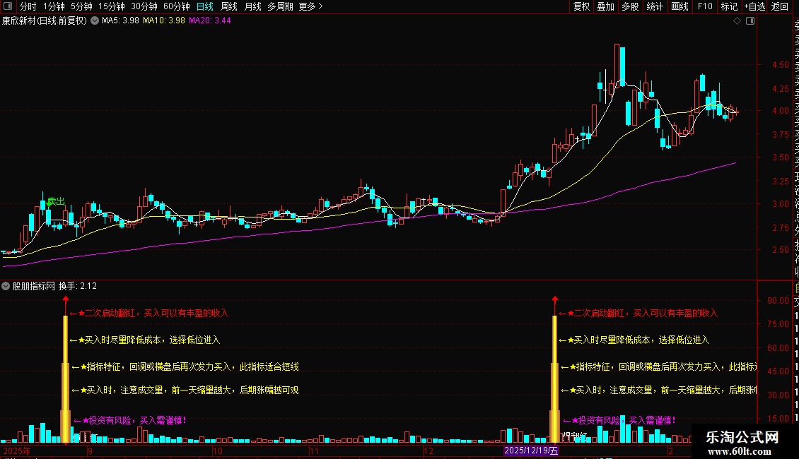 DRAWTEXT(XG1 ,14,' ←★投资有风险,买入需谨慎!'),COLORMAGENTA;