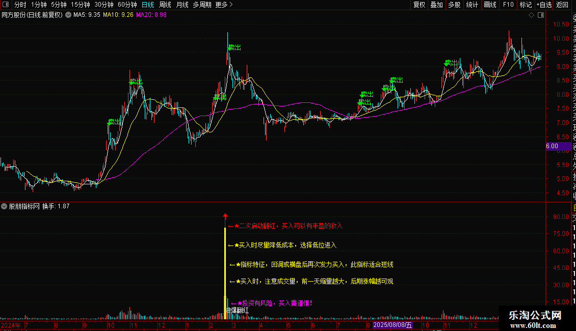 DRAWTEXT(XG1,48,' ←★指标特征,回调或横盘后再次发力买入,此指标适合短线'),COLOR00FFFF;