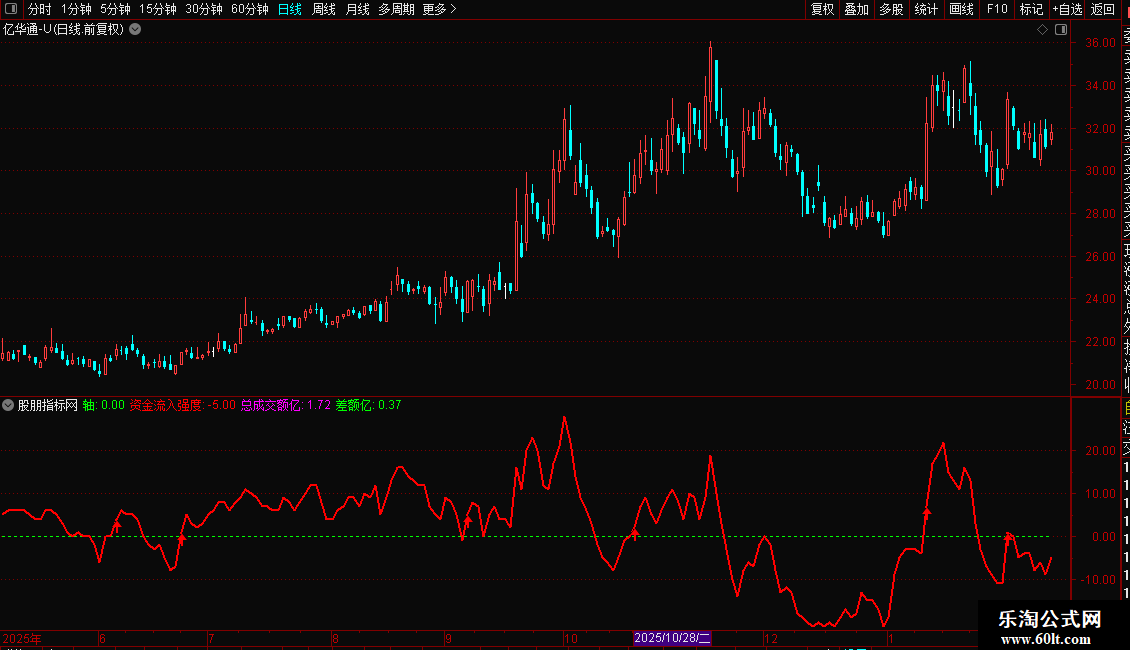 资金流入上穿0轴时买入,资金流入下穿0轴时必须卖出。