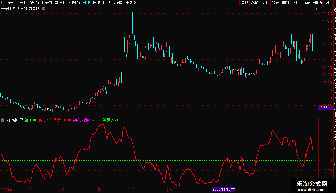 DRAWICON(CROSS(资金流入强度,0),资金流入强度,1);