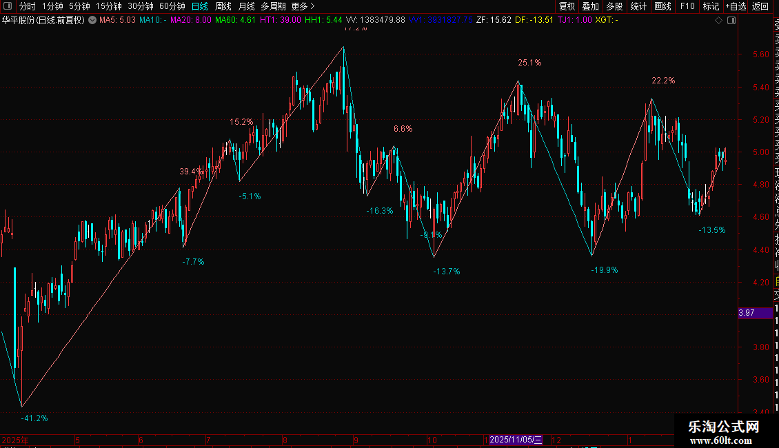 ZF:(HH/LL-1)*100,NODRAW; DF:(LL/HH-1)*100,NODRAW;
