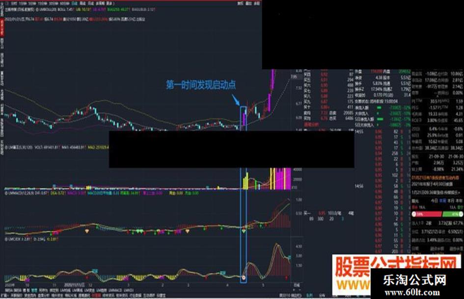 1、牛股启动信号。结合BOLL或其他指标综合判断,第一时间发现牛股启动。
